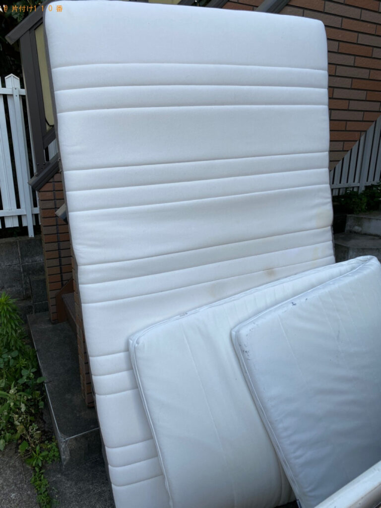 セミダブルマットレス、マットレス付きシングルベッドの処理にお困りのお客様からご相談いただきました。金額が予算内だったことと早めにきてもらえることがご依頼の決め手になったとのことです。作業がとても早く助かりましたとおっしゃっていただけ、100点満点の評価を付けていただきました。不用品がございましたらまたいつでもご相談ください。 |